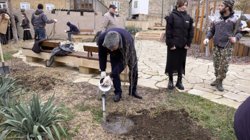 Сегодня, 25 декабря, в сквере на улице Н. Крупской состоялась посадка 36 деревьев, среди которых 30 гранатовых и 6 туй.